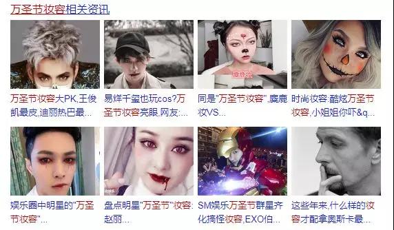 至于妝容怎么畫(huà)?大家可以在網(wǎng)上搜“萬(wàn)圣節(jié)妝容”,就會(huì)有很多創(chuàng)意造型,隨便模仿一下就能吸睛無(wú)數(shù)。