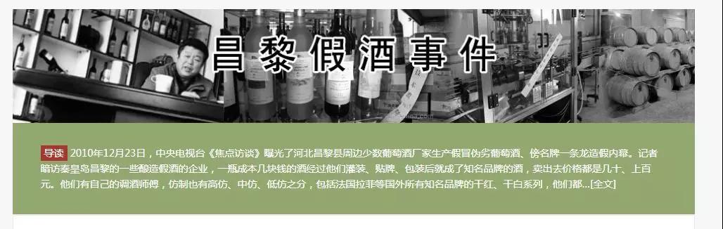 眾所周知,9年前,央視《焦點訪談》曝光了河北昌黎縣葡萄酒廠家生產(chǎn)假冒偽劣葡萄酒、傍名牌一條龍造假內(nèi)幕。