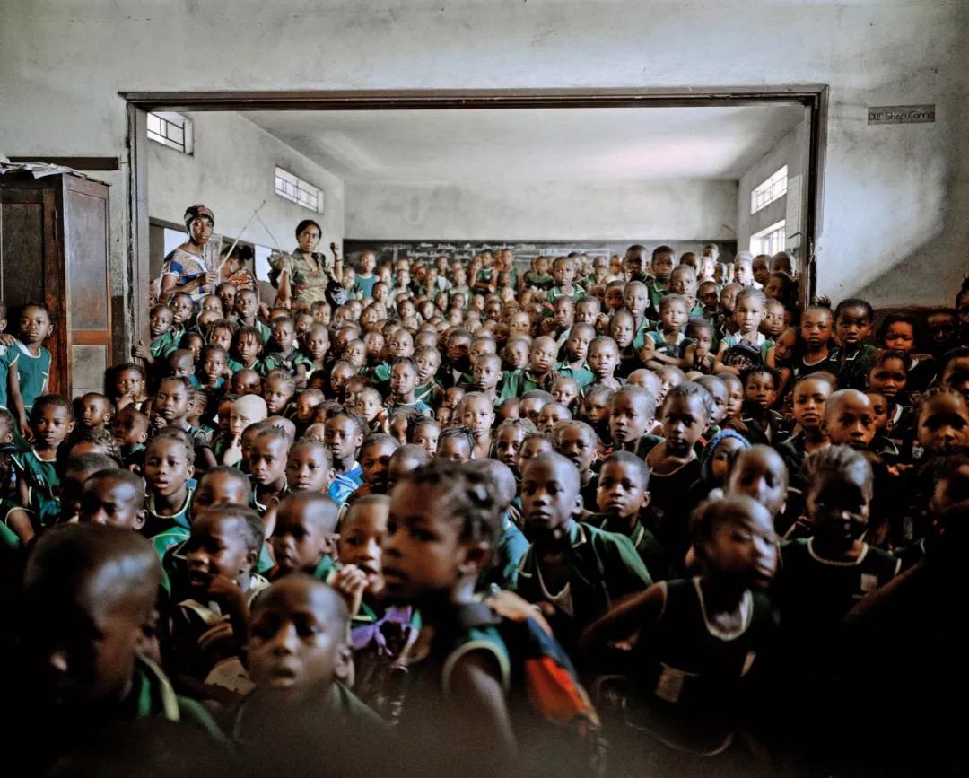 塞拉利昂弗里敦,小學(xué)教室內(nèi)孩子們正在學(xué)習(xí)霍亂的防護(hù)知識(shí)