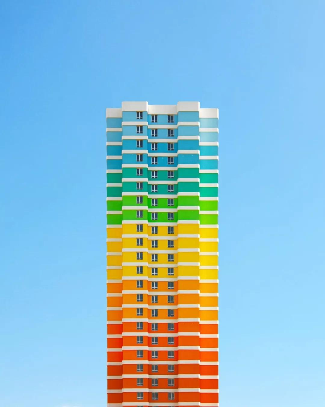 托倫把他對建筑設(shè)計和攝影的喜愛完美的結(jié)合在了一起,他所拍攝的彩虹建筑就像是從電影中截取出來的圖片。