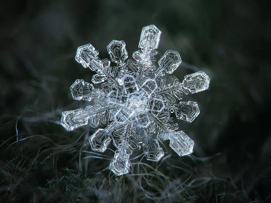 在他的微距鏡頭下,紛紛揚(yáng)揚(yáng)的一場(chǎng)場(chǎng)雪被“拆碎”,形態(tài)各異的冰晶呈現(xiàn)出各式形狀規(guī)整、樣式精美的圖案,在讓人沉迷于雪花無限美麗與夢(mèng)幻的同時(shí),亦讓人不禁贊嘆大自然的神奇。