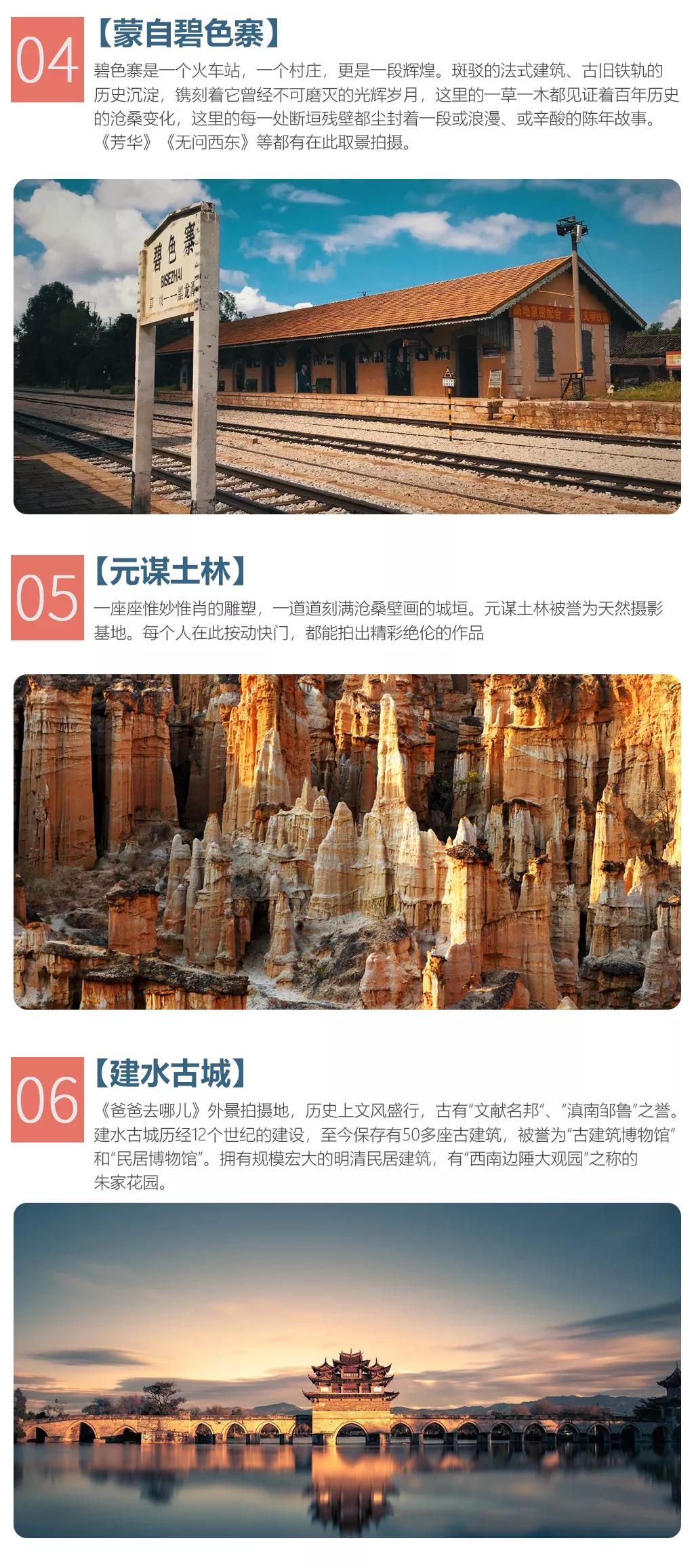 隨后我們前往蒙自碧色寨,經(jīng)2小時車程抵達蒙自百年歷史記憶庫,素有 “小巴黎”之稱的滇越鐵路【碧色寨】,這里是電影《芳華》和《無問西東》的拍攝地,斑駁的法式建筑和古舊的鐵軌,鐫刻著它不可磨滅的光輝歲月,也是攝影師和畫家最喜歡去的取景地點;