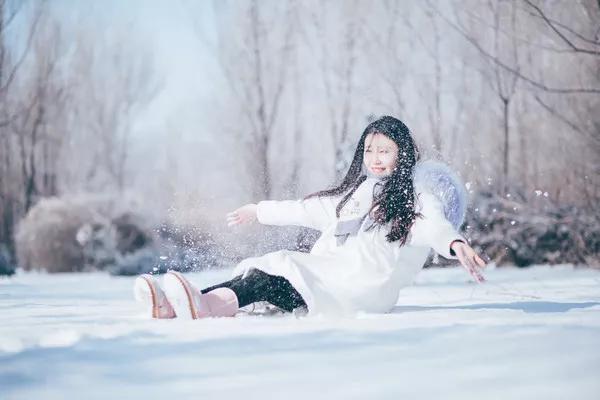 也可以直接躺在雪地里,攝影師鏡頭放低,只將半邊臉納入鏡頭。