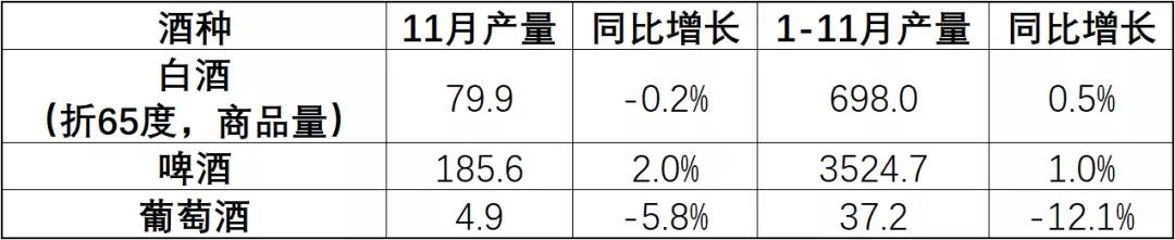 2019年3月至11月,國產(chǎn)葡萄酒當月產(chǎn)量同比下滑22.7%、26.3%、14.6%、6.5%、25.0%、26.2%、18.8%、8.7%、5.8%。