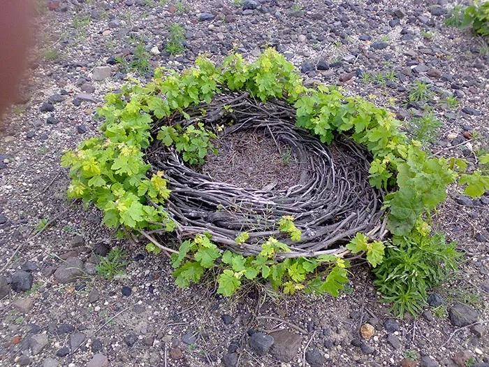 這是一種很怪異的樹形,整個(gè)葡萄樹盤繞成一個(gè)筐形,像是一個(gè)鳥巢一樣……它基本上,長這樣: