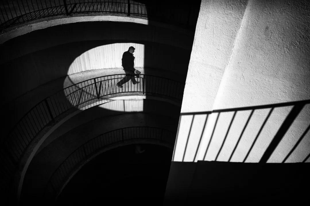 黑白色調(diào)讓環(huán)境題材的形狀、線條和模式更分明地呈現(xiàn)出來。比如,樓梯的臺階、玻璃地板、斑馬線等,這些都是我們平日里常見的建筑物。