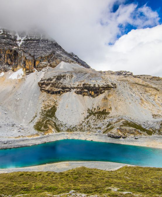 作為稻城亞丁的三大圣湖之首,神山中的綠寶石,牛奶海的中間是碧藍(lán)的雪水,周邊是一圈乳白色。