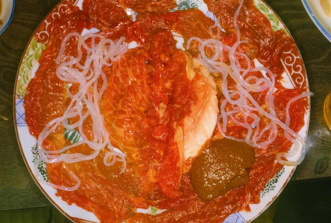 日本攝影家荒木經(jīng)惟有一組名為《盛宴》(The Banquet, 1993)的作品,選取四張,模樣都有點(diǎn)張揚(yáng),其中一盤最為生猛,能讓一路看過來已經(jīng)懷念肉食的觀眾趕緊轉(zhuǎn)頭再看幾眼水果。當(dāng)今的食物照片多數(shù)用于傳播和分享,絕大多數(shù)都以精致面目示人,這樣一組照片通過近乎冒犯的方式提醒觀眾:不僅食物本身,就連食物的呈現(xiàn)其實(shí)都是多樣的。