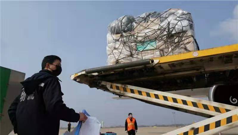 1月28日,工人在武漢天河國際機(jī)場卸貨。當(dāng)日,武漢天河國際機(jī)場共有3架全貨機(jī)滿載醫(yī)療防疫物資抵港,包含醫(yī)用口罩、醫(yī)用帽子、乳膠手套、防護(hù)服、消毒液等各類防護(hù)用品及醫(yī)療藥品,共計60余噸。