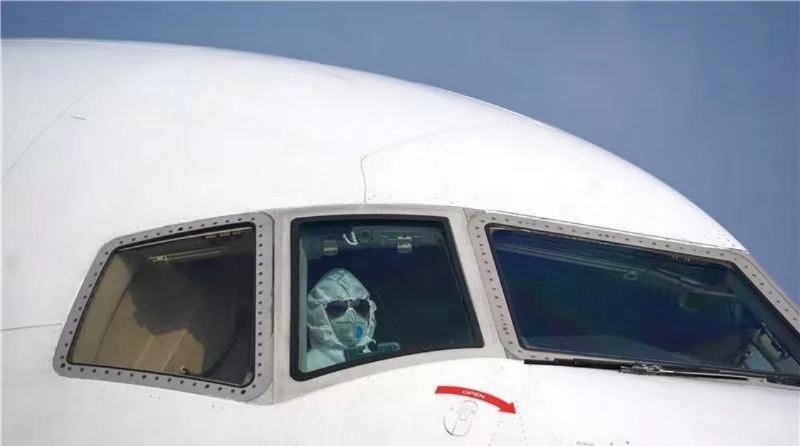 1月28日,在武漢天河國際機(jī)場,一架貨運(yùn)飛機(jī)駕駛員將飛機(jī)停至卸貨區(qū)。
