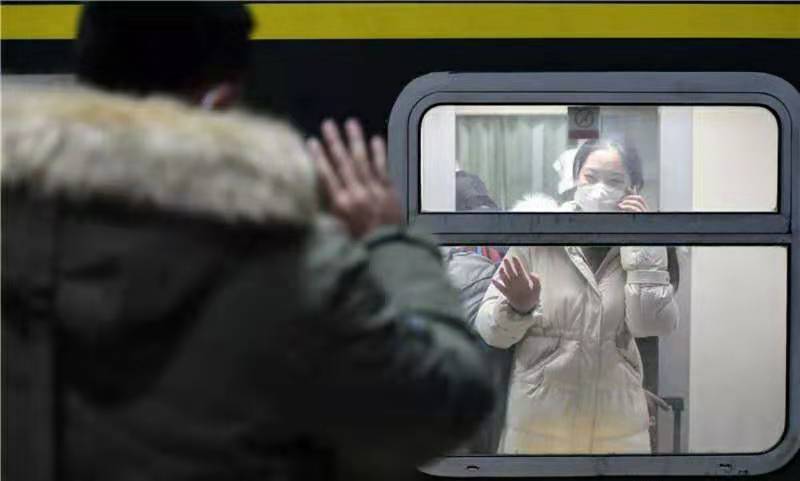 1月26日,河北省第一批赴鄂抗疫醫(yī)療隊隊員趙紫薇(后)在出發(fā)前與男友揮手告別。當(dāng)日,由河北省衛(wèi)生健康委組建的河北省第一批赴鄂抗疫醫(yī)療隊從石家莊出發(fā)前往武漢,支援湖北抗擊新型冠狀病毒感染的肺炎疫情。這些醫(yī)療隊員來自河北省10個省直醫(yī)院和13個市三級醫(yī)院,共150人。