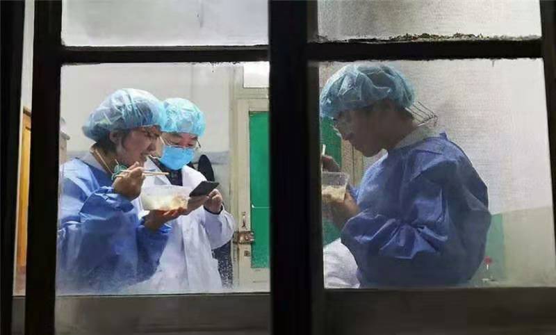 1月24日晚,蘭州大學(xué)第一醫(yī)院的一線醫(yī)護(hù)人員在吃年夜飯。