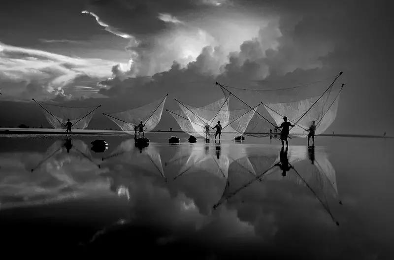 這張照片的關(guān)鍵是什么呢?就是他的倒影還還有她的影調(diào),因為彩色的這些照片看的太多了,所以這張照片做成黑白的話,通過凸顯這個網(wǎng)的那些光與倒影構(gòu)成的影調(diào)還不錯。