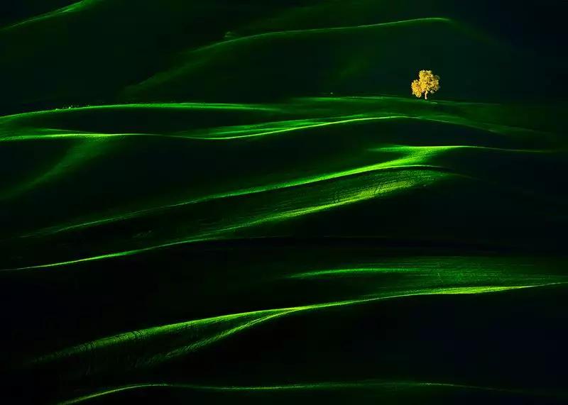 這張照片跟所有照片一樣,大量面積的暗影調(diào),但是利用光線打在山上所形成的色彩做線條構(gòu)圖,光影繪畫,線條多而不亂。在攝影旅途如何觀察光線形成的對角線構(gòu)圖。