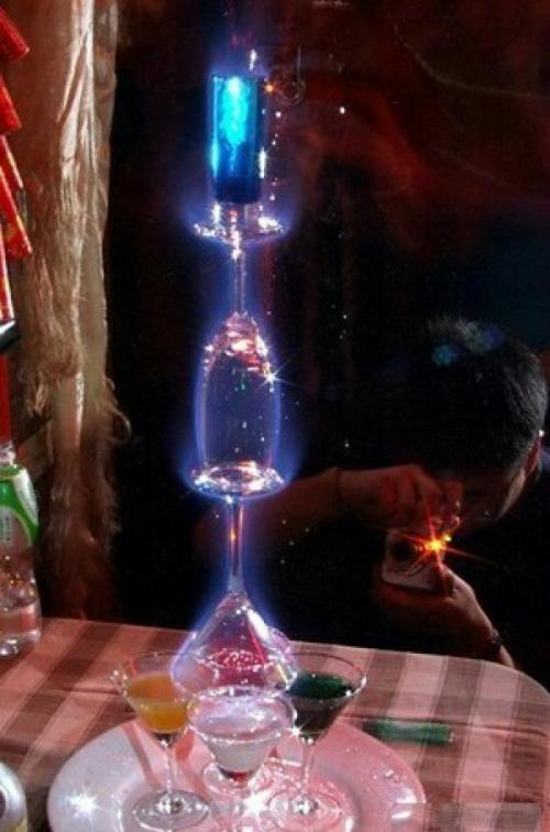 【噴火林寶堅(jiān)尼】這款酒由于音譯不同,也有叫蘭寶堅(jiān)尼的,總之都是這款酒。為什么要學(xué)會這款酒呢?看照片你便猜到一二了。酒吧里面,多聚集了年輕男女,他們平時(shí)就喜歡看好萊塢大片震撼的場面,這款酒絕對是你震撼全場的必殺技,學(xué)會它,準(zhǔn)備接收各種各樣的驚嘆聲吧!