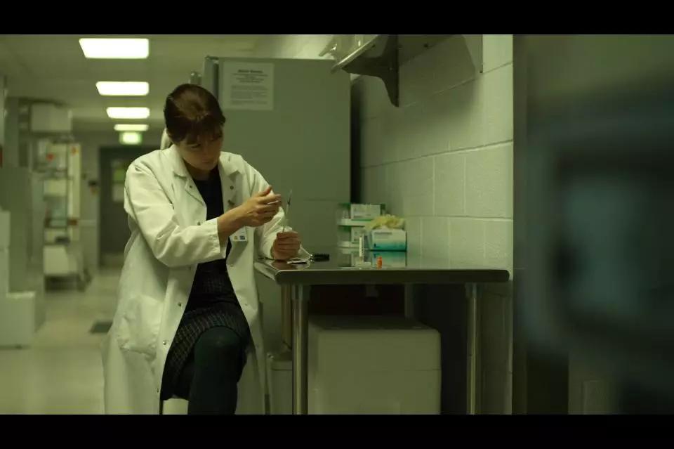 她為自己注射了實驗疫苗,然后在病重的父親面前暴露了自己,一種科學(xué)家式的“不成功便成仁”。(此處致敬用自己做實驗發(fā)現(xiàn)幽門螺桿菌的馬歇爾醫(yī)生)