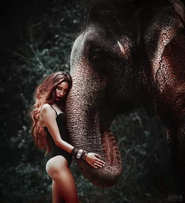 有獨(dú)特的配角,當(dāng)然要毫不猶豫地使用。當(dāng)然,必須考慮到攝影表現(xiàn)的方式,觀察下圖,盡管大象是核心視覺元素,但攝影師依然盡力動(dòng)用構(gòu)圖和色彩上的手段,來(lái)保證視覺上的美感,同時(shí)保證人物在整個(gè)畫面中的中心感