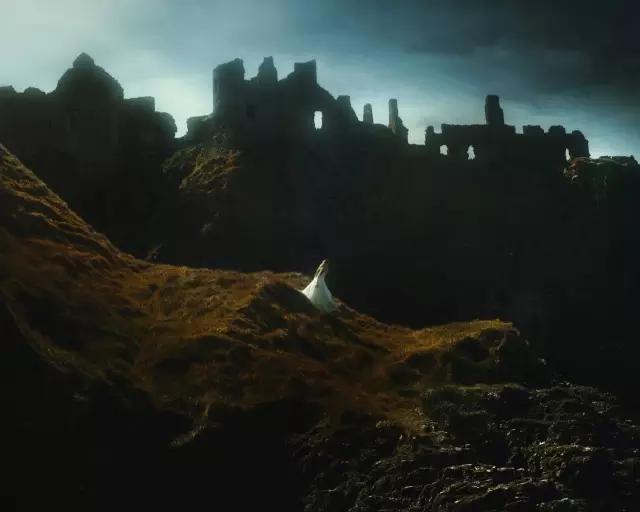 婚紗照數(shù)量龐大,要想拍出絕對(duì)的新意很難了,但在美感上,留給攝影師的空間還是很多的。像下圖這張作品,一方面利用了富有詩(shī)意的側(cè)光來(lái)刻畫人物,表現(xiàn)山坡上植被的唯美色調(diào);另一方面則突出表現(xiàn)了古堡的剪影,勾勒出偵探電影般的幽深氛圍。