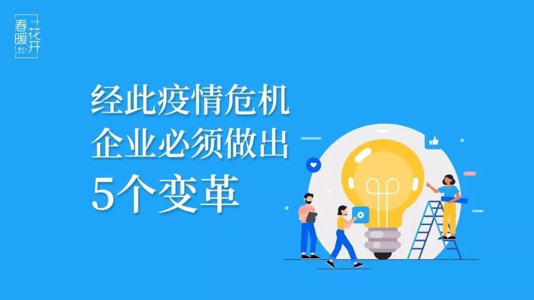 新冠疫情給每個(gè)企業(yè)帶來巨大的危機(jī),只有那些正確認(rèn)知危機(jī)并做出徹底改變的企業(yè),才能轉(zhuǎn)危為機(jī),成為真正的強(qiáng)者。如何把疫情危機(jī),變成企業(yè)自我變革升級(jí)的契機(jī),需要企業(yè)做出5個(gè)方面的變革。