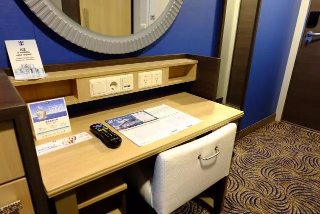 游輪上的插座是美標(biāo)的,兩個(gè)插孔的插座可直接使用,三個(gè)插孔的插座需要轉(zhuǎn)換器,光譜號(hào)的艙房?jī)?nèi)上還配有兩個(gè)UBS充電插座喲~