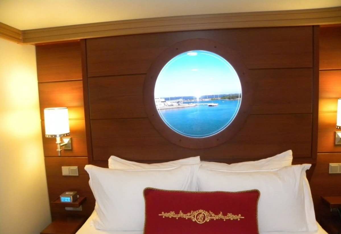 為了彌補住在內(nèi)側(cè)客艙的游客在客艙內(nèi)看不到海景的遺憾,“迪斯尼之夢”號( Disney Dream)郵輪為內(nèi)側(cè)客艙提供了虛擬舷窗,通過安裝在船外的高清攝像機,游客可以看到船外的實時景色,還有孩子們喜歡的動畫。