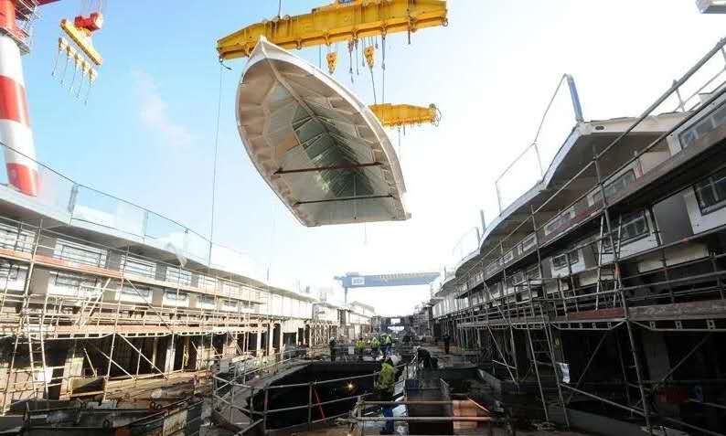 作為造船人,對最大郵輪的偏好是不言而喻的。因為大是受到很多因素限制的,有技術(shù)上的,現(xiàn)有規(guī)范方面的,也有設(shè)備條件和自然條件的限制。所以,海洋綠洲級郵輪,只在芬蘭土爾庫的船廠(現(xiàn)在的MEYER Turku)和STX法國船廠(STX France)(現(xiàn)在的法國大西洋船廠Chantiers de l’Atlantique)建造過。著名的德國邁爾船廠(Meyer Werft) 由于位于埃姆斯河下游,2002年9月之后船只可以通過的水深才達到8.50米,寬度為63.5米。而海洋綠洲級郵輪的最大寬度為66米。法國大西洋船廠為了建造海洋綠洲級郵輪,也專門添置了設(shè)備。