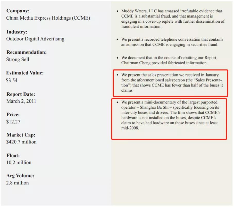 這份報告指出,中國高速頻道擁有的公交車數(shù)量,只有他們數(shù)據(jù)的一半;另外,他們對外宣布的最大一份合同,壓根兒就沒簽。