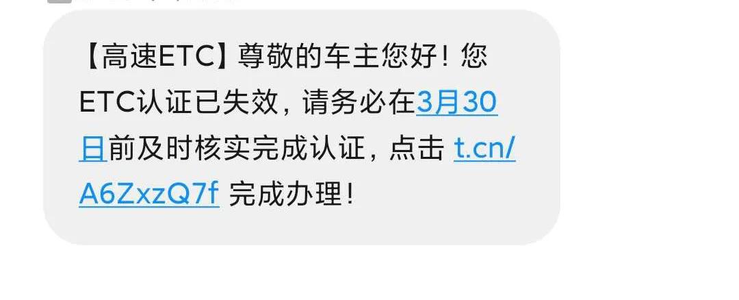 ETC不存在過(guò)期再認(rèn)證,針對(duì)“ETC認(rèn)證失效”類的短信很可能是騙子群發(fā)的釣魚短信,短信中的鏈接其實(shí)是騙子用來(lái)套取個(gè)人信息,從而盜取卡內(nèi)資金的手段,請(qǐng)廣大市民切勿相信!