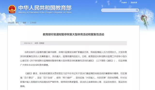 暫停恢復學校體育單項賽事、綜合性運動會等大型體育活動和聚集性活動。各地各校要堅持審慎原則,完善有關組織和工作機制,提前謀劃相關活動預案,做好活動賽期等調(diào)整工作。