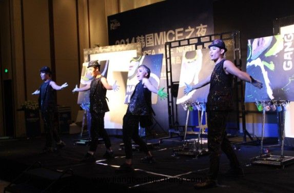 當(dāng)晚,來自韓國涂鴉秀HERO的團(tuán)體表演將整個活動引上了高潮。據(jù)韓國涂鴉秀HERO的演出公司Pentatonic的副社長副社長蔡馨基介紹:“韓國涂鴉秀以非語言公演形式,通過美術(shù)繪畫來與觀眾進(jìn)行溝通,充滿原創(chuàng)和藝術(shù)性,無語言障礙,不懂韓語也可以輕松領(lǐng)會。將立體影像在觀眾面前展開夢幻現(xiàn)場繪畫技術(shù)和最先進(jìn)的媒體藝術(shù)相結(jié)合的新概念表演藝術(shù),把繪畫的過程和輕松活潑的喜劇、默劇和精彩的舞蹈相結(jié)合,并將這種方式表現(xiàn)成為一種舞臺語言。”