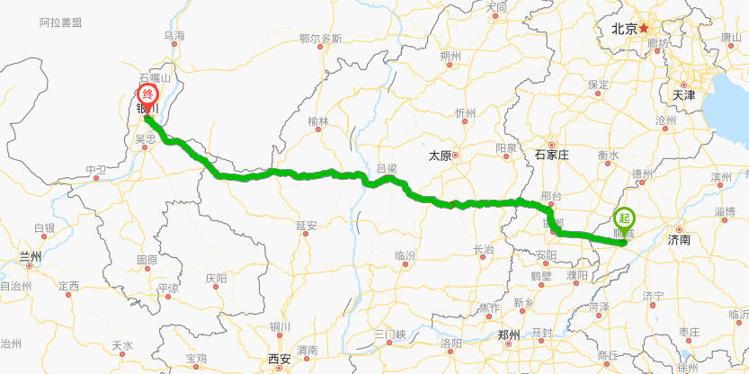 聊城出發(fā),全程約十四小時,途經(jīng)東呂高速、青銀高速,每2-3在服務(wù)區(qū)調(diào)整休息。