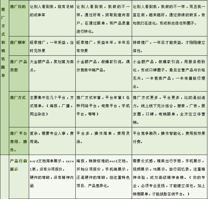 2、怎么做?如何打造口碑圈:需要市場推廣,銷售跟單,行前、行中、行后服務升級,產品升級,全方位立體化的營銷。除此之外,別無他法。