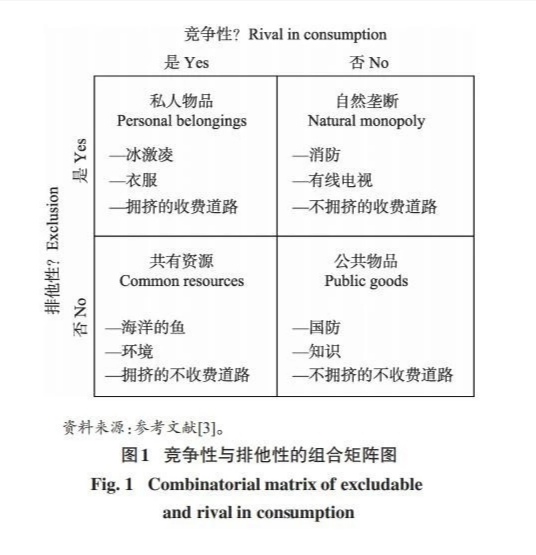 我們也將既無(wú)排他性、又無(wú)競(jìng)爭(zhēng)性的物品稱為純公共物品(pure public goods),而其他兩類則稱為準(zhǔn)公共物品(quasi-public product)。