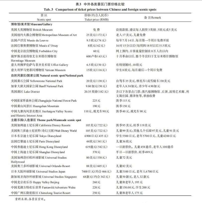 (4)自然景觀類景區(qū)與國(guó)際上同類主要景區(qū)相比價(jià)格偏高;