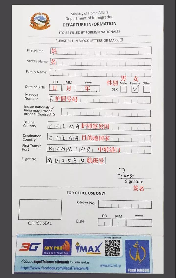 尼泊爾出境