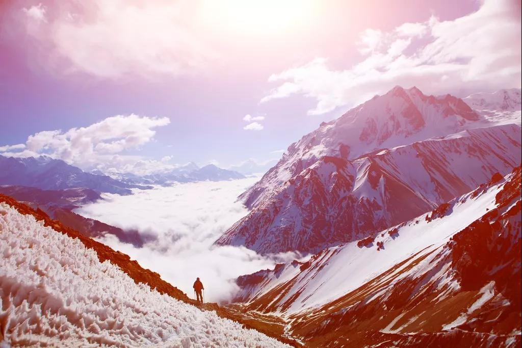 在納加闊特、薩朗闊特以及徒步途中,雪山日出會(huì)呈現(xiàn)出最美的姿態(tài),日出日落、日照金山盡在頃刻間,瞬間讓人覺(jué)得自己是那么的微不足道。