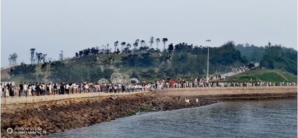 黃島雖然不是一個島,但他和青島市區(qū)的位置關(guān)系好比一個'c'字母的兩個端點,以前去黃島,要么做輪渡,要么環(huán)膠州灣繞個大圈倆小時,現(xiàn)在好了,修了海底隧道,坐隧道公交嗖的一下就過去了,出隧道口在跑一段就是金沙灘了,沙子極細(xì)腳感極好。