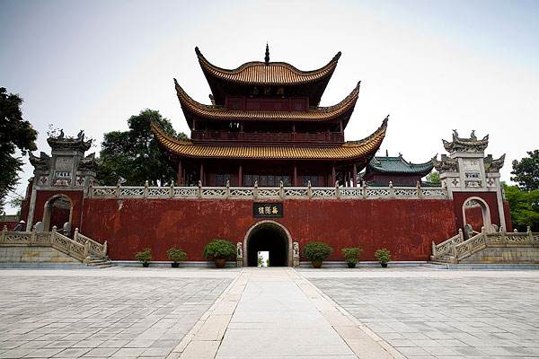 岳陽樓位于岳陽市西門城頭、緊靠洞庭湖畔,與江西南昌的滕王閣、湖北武漢的黃鶴樓并稱為江南三大名樓。“先天下之憂而憂,后天下之樂而樂”,北宋范仲淹的名作《岳陽樓記》,讓這座洞庭湖畔的名樓,成為一個家喻戶曉的地方。岳陽樓的樓頂形式非常獨特,采用了古代將軍頭盔式的頂式結(jié)構(gòu),全樓沒有用一根鐵釘和一道橫梁,在我國古代建筑史上也是獨一無二的。登上三層高樓頂,憑欄眺望,眼前是煙波浩渺的八百里洞庭湖水,耳邊不由自主的回蕩起那些千古佳句。