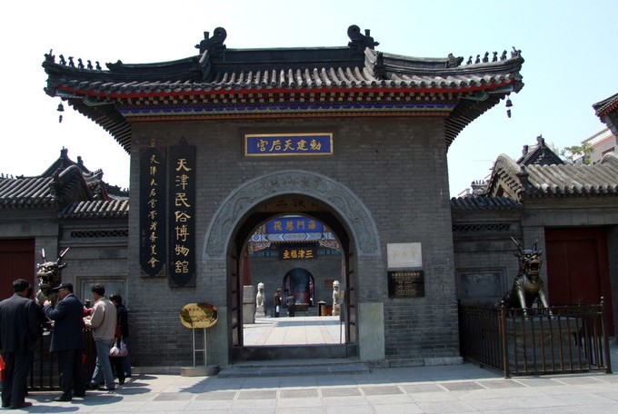 天后宮位于古文化街中心,也是古文化街古跡的核心,祭祀保佑出海遠航平安的天后娘娘,已有600余年歷史。現(xiàn)在是天津民俗博物館的所在地,館內(nèi)介紹了天津城歷史、民俗,陳列著明代天津城磚、清代漕運模型、清代水機等文物。
