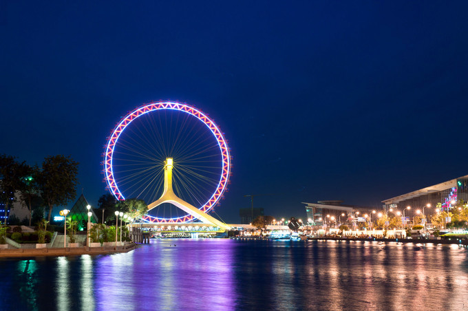 摩天輪旋轉(zhuǎn)一周所需時間為28分鐘,到達最高處時,周邊景色一覽無余。每當夜晚華燈初上時,天津之眼的彩燈柔美閃爍,與海河上船只的燈光交相輝映,吸引無數(shù)游客來到這里,拍攝全景或是乘坐觀光,享受別樣的浪漫。