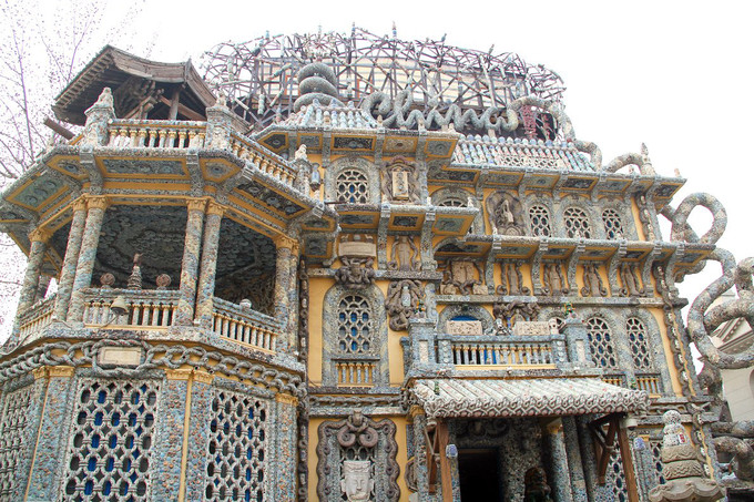 瓷房子是一座用數(shù)萬件古董瓷片裝修而成的法式洋樓,是天津市的地標建筑之一。建筑由瓷房主人張連志親自設(shè)計,所用瓷器和瓷片年代從漢代一直跨越到清代,中國所有種類的官窯、民窯瓷幾乎都可以在這里看到。建造時使用了20多噸水晶石與瑪瑙,4000多件古瓷器,300多尊歷代石雕造像等,被人們稱為一座價值連城的“中國古瓷博物館”。出口所在的小房間有“鎮(zhèn)館之寶”,不要錯過了,這間房間不允許照相。