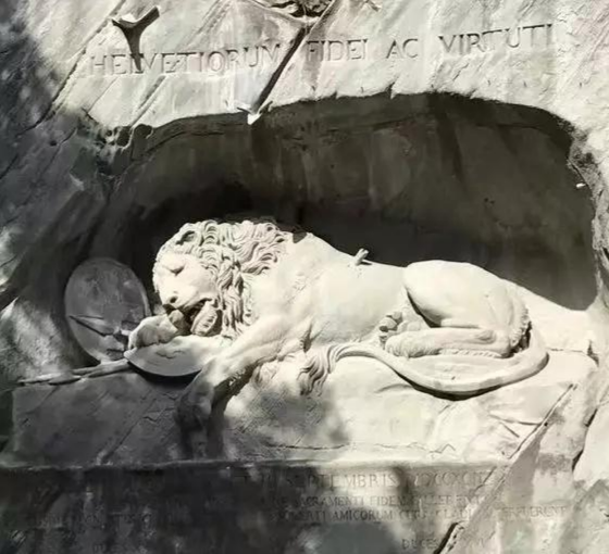 這座石獅的表情任何人看了都會(huì)動(dòng)容,背上中劍的石獅盡管生命危在旦夕卻依舊守著盾牌與長(zhǎng)矛,這是在致敬那些曾為瑞士戰(zhàn)死異國(guó)的軍人們。