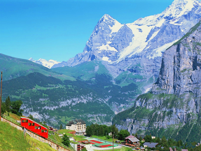 少女峰是瑞士最為出名的山峰,從因特拉肯火車(chē)站搭乘前往少女峰的觀(guān)光火車(chē)就能到達(dá)這個(gè)歐洲之巔。紅色的火車(chē)穿梭在阿爾卑斯山之間,雪山、森林和野花迎面而來(lái),兩側(cè)的風(fēng)景凈收眼底。