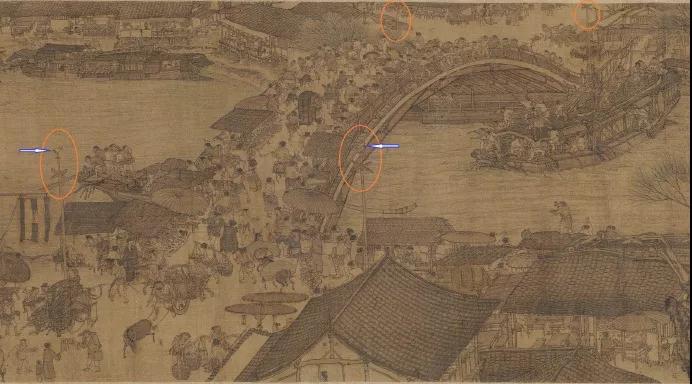 他們通過丈量街道,為商販規(guī)劃出可以擺攤的位置。商販必須在自己固定的位置里叫賣,不可越界經(jīng)營(yíng)。《宋刑統(tǒng)》明文規(guī)定:諸侵街巷阡陌者,杖七十。《清明上河圖》里虹橋旁邊的那根木樁,又叫表木,就是街道司為攤販樹立的分界線的標(biāo)志。