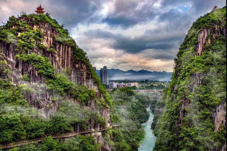 餐后集合趕往【酉陽桃花源景區(qū)】,因自古武陵山地區(qū)“蠻不出洞、漢不入境”的皇命戒律,景區(qū)在武陵大山中沉睡了千年,被廣泛認為是陶淵明筆下《桃花源記》原型地。呈現(xiàn)著“其中往來種作,男女衣著,悉如外人,黃發(fā)垂髫,并怡然自樂”絕美的“世外桃源”景觀。然后我們集合回返重慶。