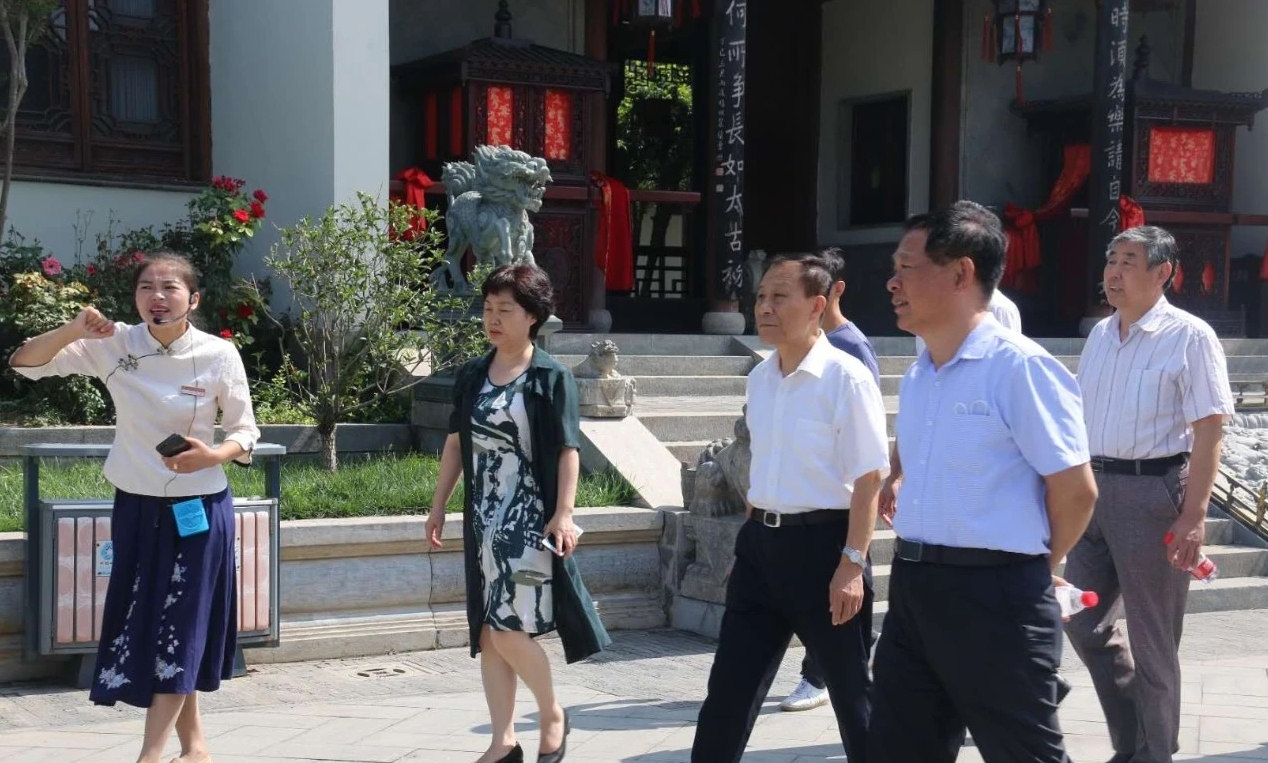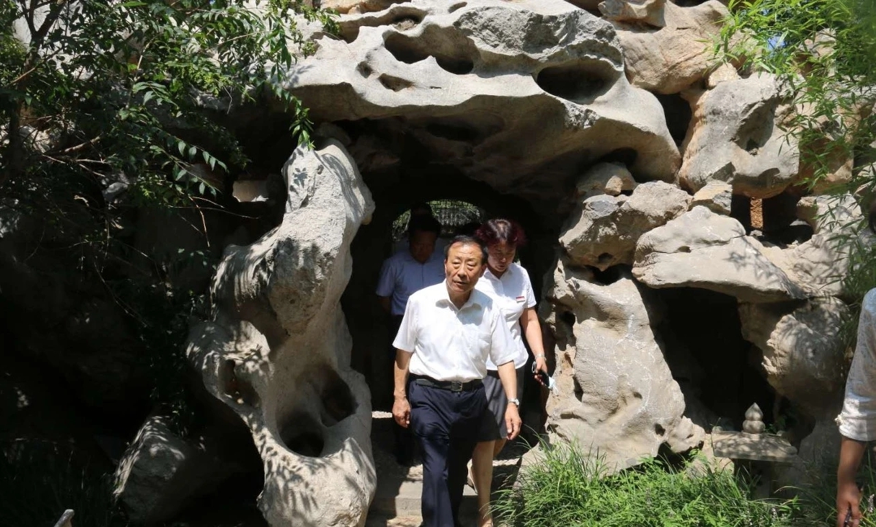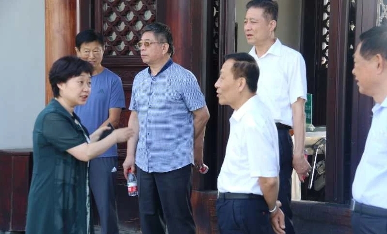 2020年7月20日山東省委原副秘書長、山東省精品旅游促進(jìn)會(huì)專家咨詢委員會(huì)主任杜文彬同志率省精品旅游促進(jìn)會(huì)特邀副會(huì)長張殿恒同志、省精品旅游促進(jìn)會(huì)副會(huì)長楊愛青同志、山東文旅景區(qū)投資集團(tuán)副總經(jīng)理曲磊同志、省精品旅游促進(jìn)會(huì)副秘書長李春林同志、省精品旅游促進(jìn)會(huì)秘書處張?jiān)茙浲镜纫恍辛耍搅某鞘信R清宛園檢查指導(dǎo)工作。