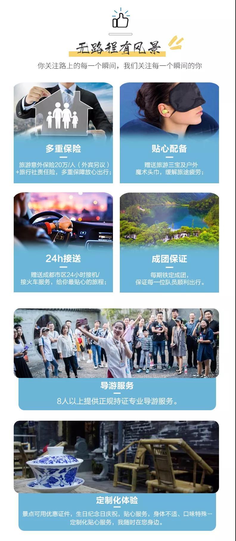 4、九寨溝景區(qū)實(shí)行分區(qū)域開(kāi)放,開(kāi)放區(qū)域?yàn)闇峡诮?jīng)諾日朗瀑布至長(zhǎng)海,扎如溝的扎如寺及日則溝的鏡海;其中,長(zhǎng)海、五彩池、鏡海、諾日朗瀑布、樹(shù)正群海、雙龍海瀑布、扎如寺等景觀原則上為步行游覽區(qū),具體游覽方式請(qǐng)聽(tīng)從隨車(chē)講解員安排;