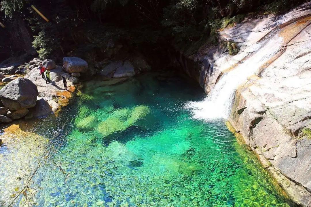 翡翠谷,又稱“情人谷”,位于黃山風(fēng)景區(qū)南大門湯口鎮(zhèn)山岔村,峽谷中分布著一百多個彩池,彩池在陽光的照耀下絢麗多彩,遠處看來,這些河谷貌似一顆顆碧綠的翡翠鑲嵌在峽谷之中,故而得名翡翠谷。