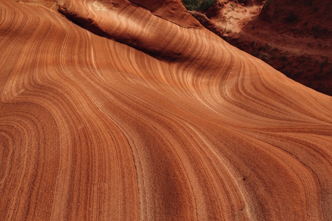 波浪谷狀的丹霞地貌,是由一億五千萬(wàn)年前侏羅紀(jì)時(shí)期沉積的巨大的沙丘所組成,沙丘不斷地被一層層浸漬了地下水的紅巖所覆蓋,天長(zhǎng)地久,水中的礦物質(zhì)把沙凝結(jié)成了砂巖,形成了層疊狀的結(jié)構(gòu),所以被譽(yù)為“時(shí)光的指紋”。讓我們一起走進(jìn)這紅色魔幻世界。