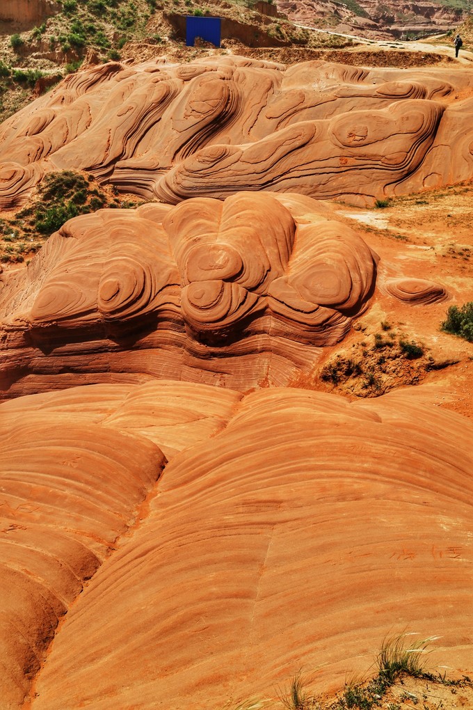 在同一緯度上,我國(guó)陜北有一個(gè)景致絲毫不遜于美西的波浪谷!它隱藏在陜北毛烏素沙漠的邊緣——靖邊縣城東南22公里處的龍洲鎮(zhèn),四面群山、碧水環(huán)繞,方圓幾十公里的紅砂巖地貌,當(dāng)?shù)厝朔Q(chēng)“波浪谷”、“紅石峁”,也叫靖邊紅沙巖峽谷。這里少為人知,還不是著名景點(diǎn),長(zhǎng)途跋涉的機(jī)票錢(qián)省了,重要的是免門(mén)票、免門(mén)票、免門(mén)票……靖邊龍洲丹霞波浪谷是中國(guó)干旱地區(qū)最典型和面積最大的丹霞地貌景觀,在數(shù)千萬(wàn)年的風(fēng)力和雨水的沖刷下才顯露出來(lái)形成孤立的山峰和形態(tài)各異的奇巖怪石。在龍州丹霞的每一塊砂巖上的紋路都千變?nèi)f化,有的像波浪,有的像獸首,有的像流水,有的像云朵,有的像陀螺,形態(tài)各異,栩栩如生,引人入勝。這里的紅色砂巖在會(huì)呈現(xiàn)不同的景色。在雨后天晴時(shí),紅砂巖的色澤會(huì)更加鮮艷,景色壯觀奇特。